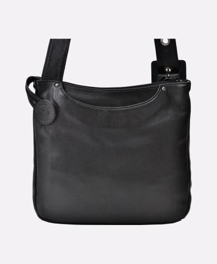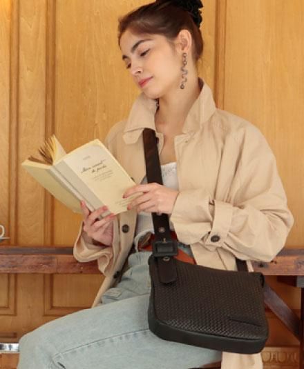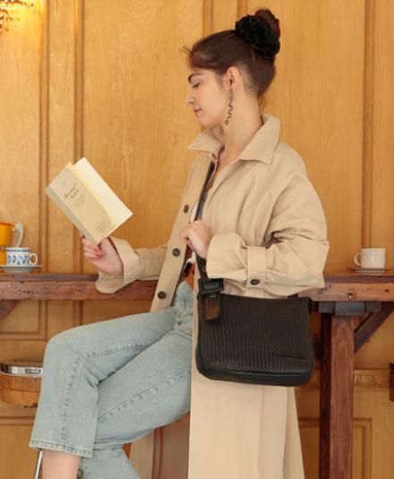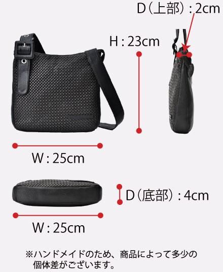 深みのあるメッシュの型押しカーフ(仔牛革)をバッグのフロント部分に使ったギャラシア。手になじむ、柔らかな革の風合い、軽さが嬉しいボディバッグです。マチが薄めなので、体にフィットしやすくなっています。