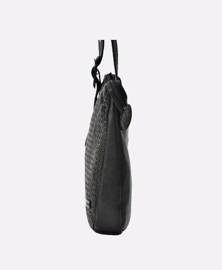 開口部のファスナーエンドがバッグ本体に止められるようになっているので、スッキリと持てます。