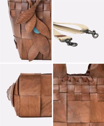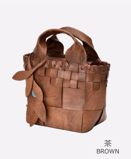 ヌメ革で丁寧に編み込まれたクラシカルな印象のカゴバッグ。茶色は木をイメージさせるナチュラルさ、黒白は都会的なスタイリッシュさを感じさせます。同じバッグでもカラーによって印象の違いを楽しめます。