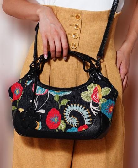 華やかなボタニカル柄のハンナ。ボナでしか手に入れることのできないオリジナル柄です。あおりポケットが付いていて機能性も十分な2wayハンドバッグ。