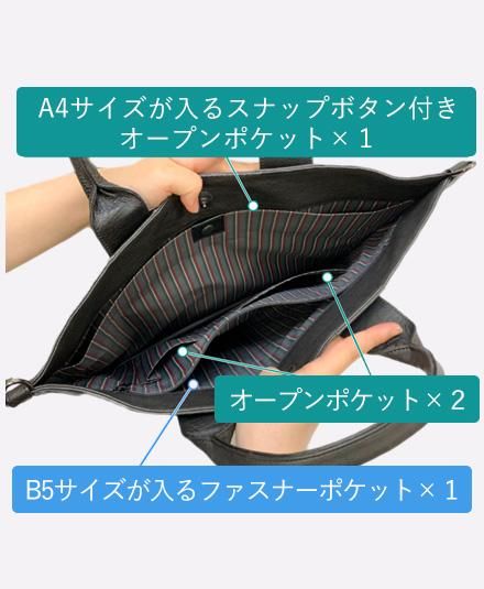 A4サイズ対応とB5サイズ対応の大きな内ポケットが付いているのも便利です。