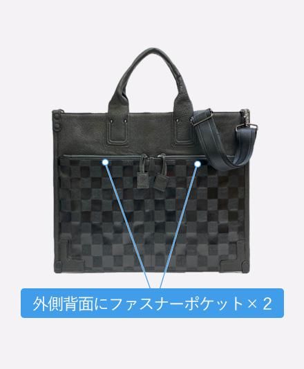 市松模様(チェック柄)を型押し加工したシュリンクレザー(仔牛革)を使った、ユニセックスで使えるオリバーシリーズ。ナチュラルなシボ(しわ目)が強調されたシュリンクレザーは、重厚感と高級感があります。