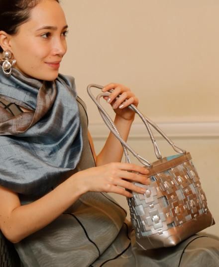 かごバッグのように軽やかな雰囲気でありながら、上質な革の質感で確かな存在感を演出。丁寧に巻きが施されたショルダー部分がしっくりと手に馴染みます。