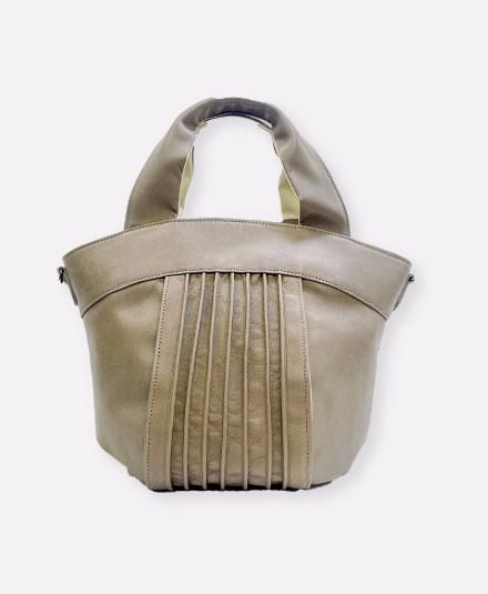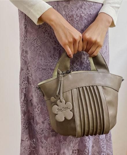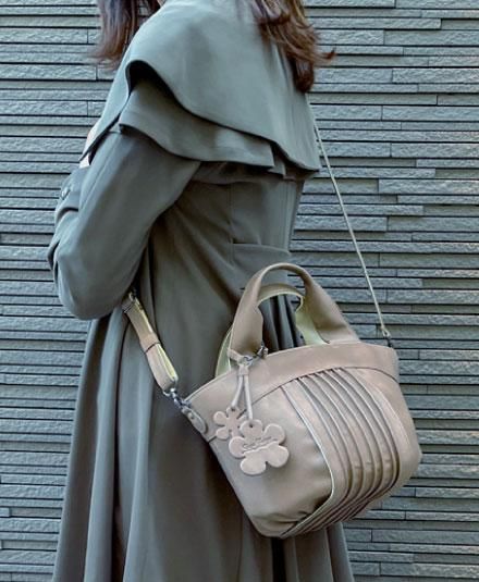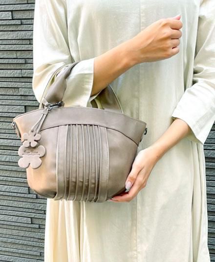 コロンしたフォルムが可愛い、2wayハンドバッグ、アンナ。手作業で縦にピンタックを入れて、立体的に。