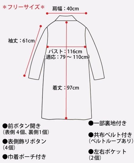 裏地:フラワープリント(ファンタジア柄) - サイズ / フリーサイズ バスト:116cm(適応79〜110cm)、肩幅:40cm、袖丈:61cm、着丈:97cm