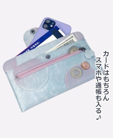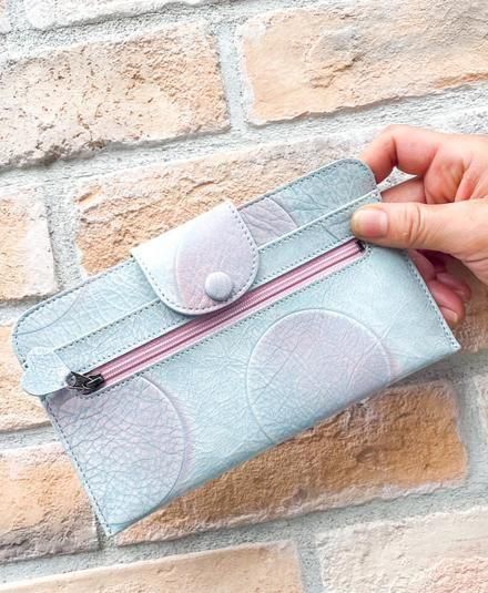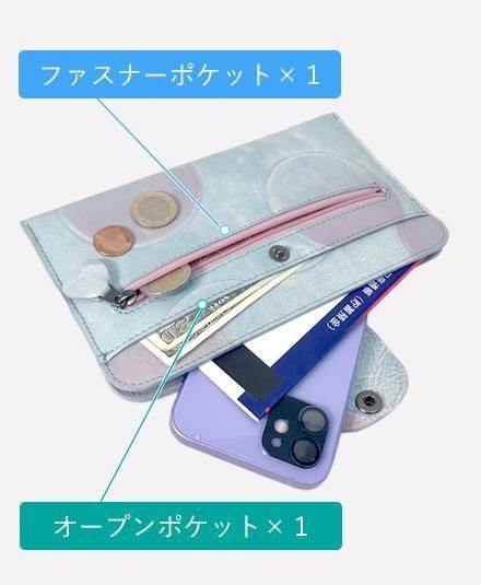 バッグの中でかさばらず、お札は折りたたみたくない、そんな要望にぴったりなマチなしのスリムなお財布。スマホを入れることもできます。