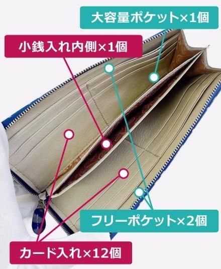 メモやレシート、クーポンなどの仕分けに便利なフリーポケットは、2ヶ所に付いています。