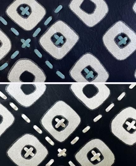 ハンドステッチとハンドペイントが施された、個性的なデザインが魅力の長財布です。L字ファスナーで開閉がスムーズで中身の整理も簡単。